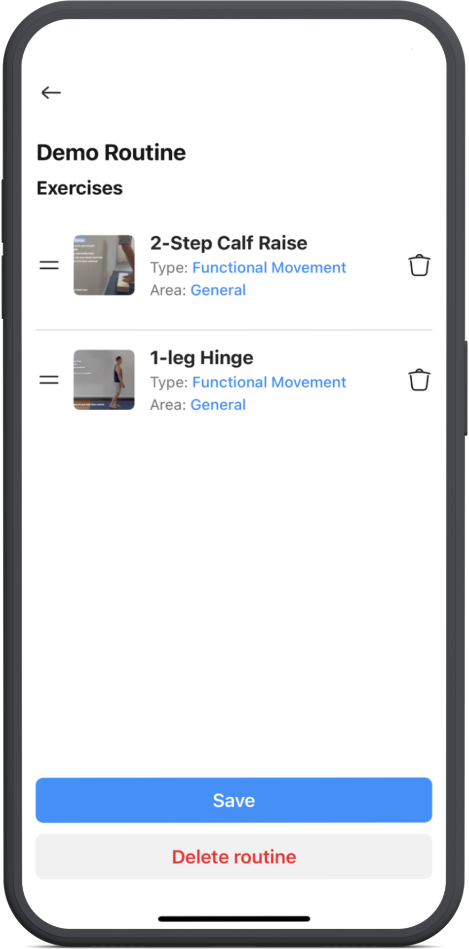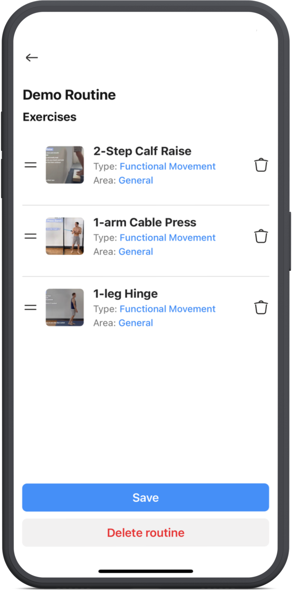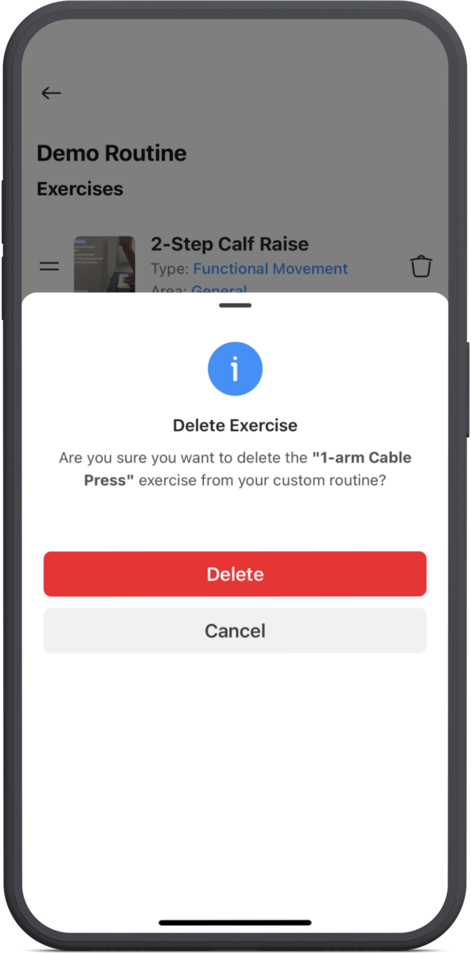 To delete an exercise, simply tap on the bin icon on the right.