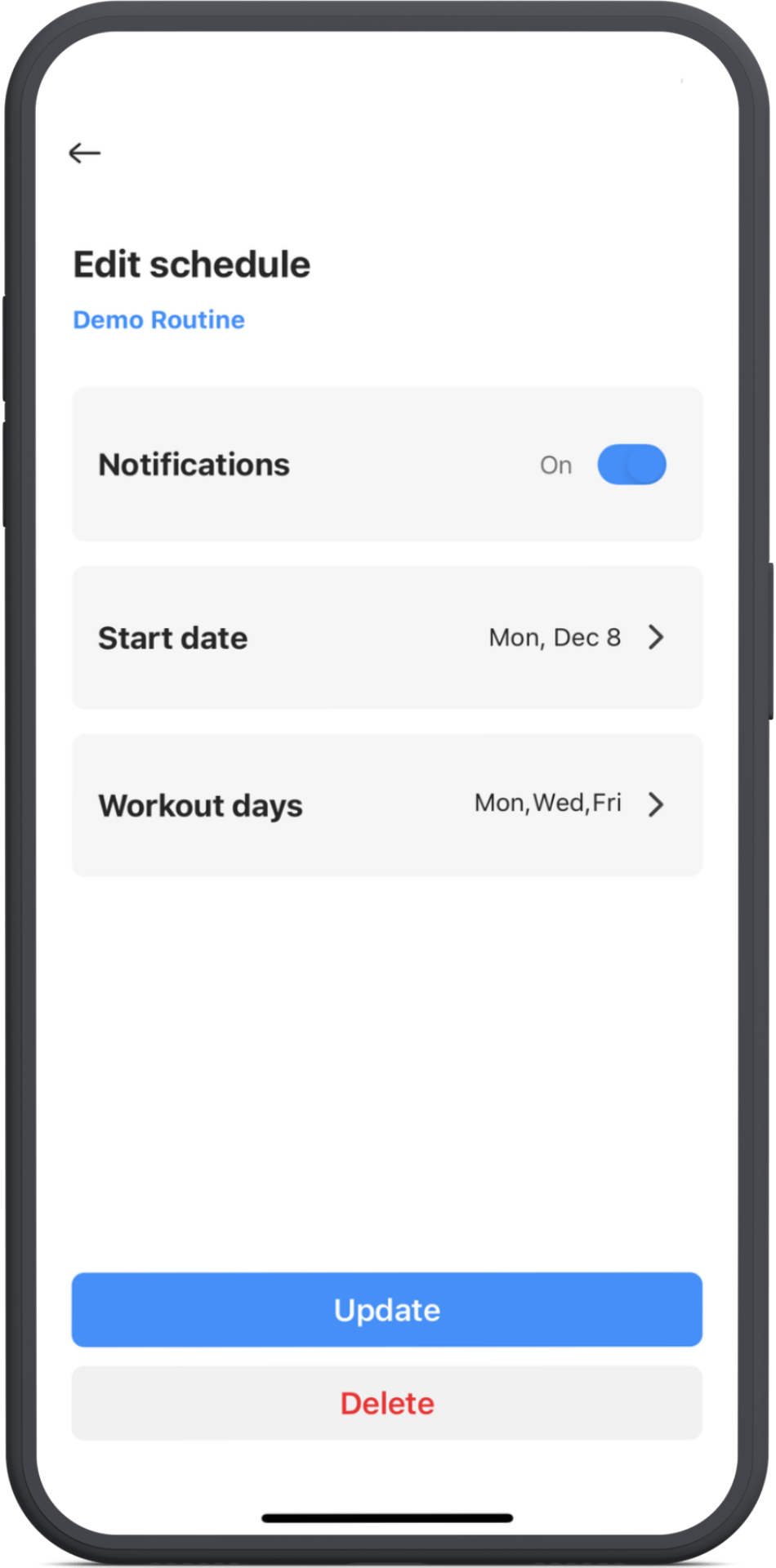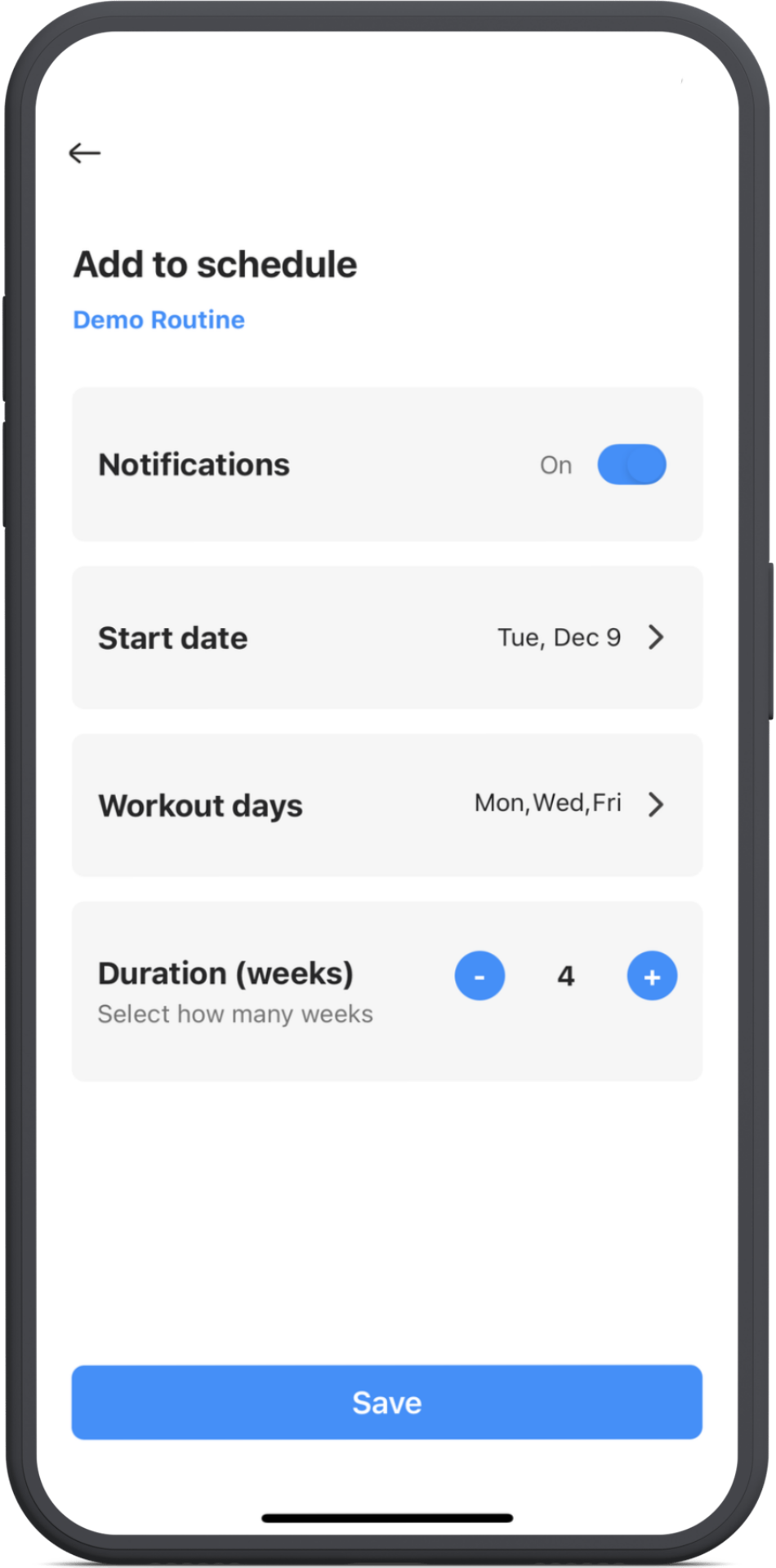 Your routine will now show on your chosen start date and the days you selected.