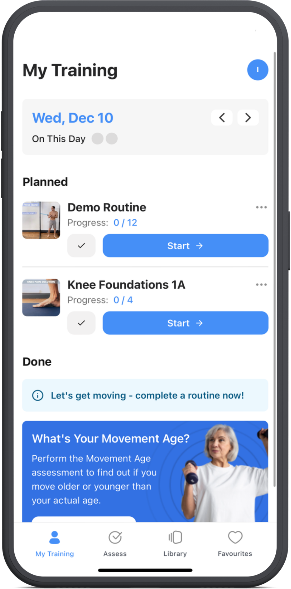 ROM Coach custom routines give you full control letting you build and schedule training that fits you perfectly.