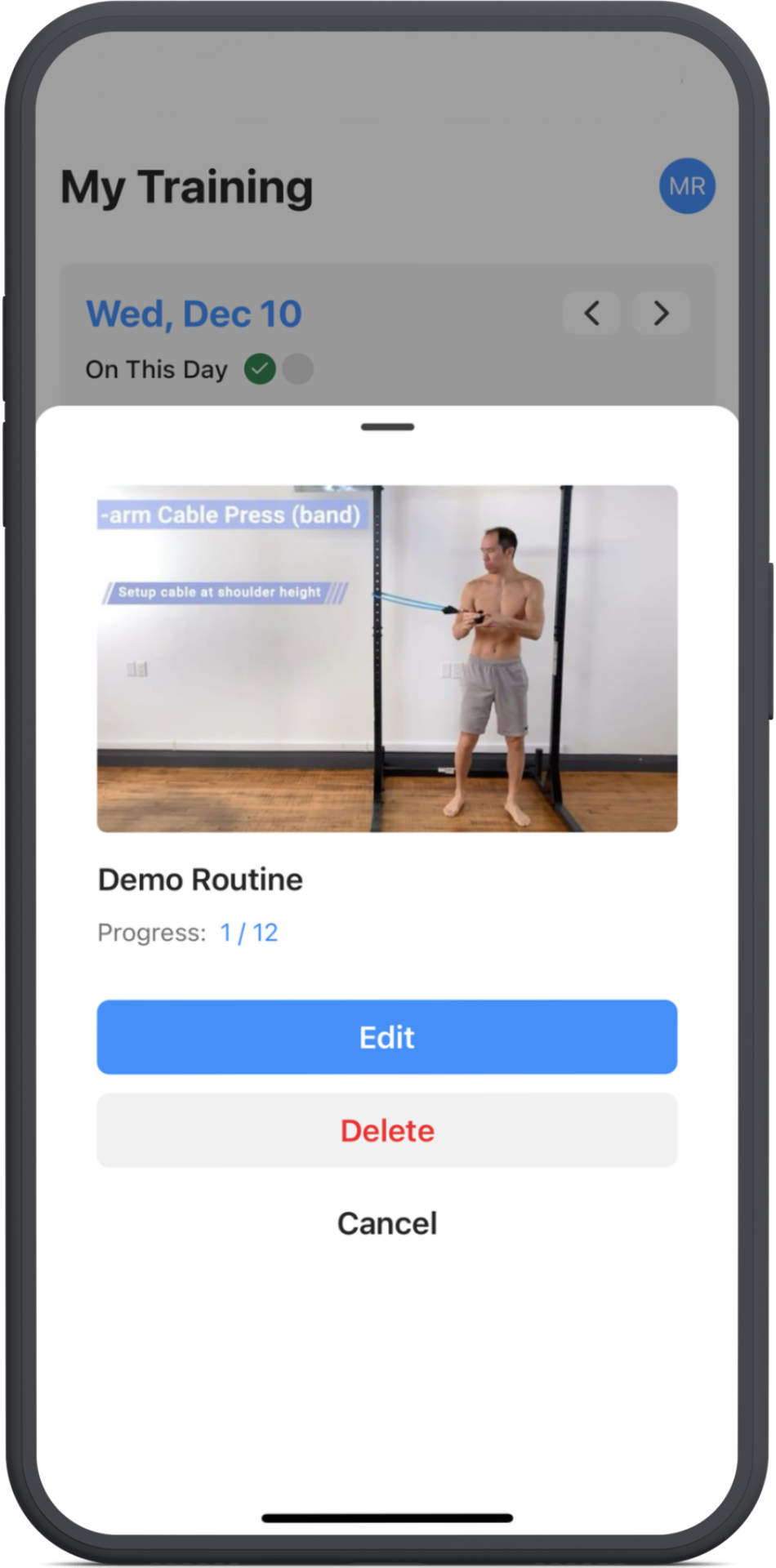 To rearrange the order of exercises inside your custom routine, or to delete one of the exercises, you'll need to edit your routine from the Routine Library.