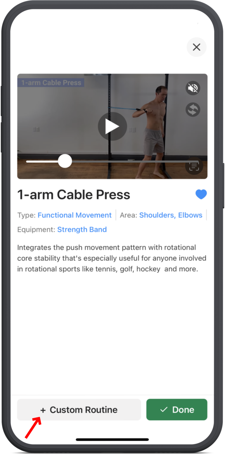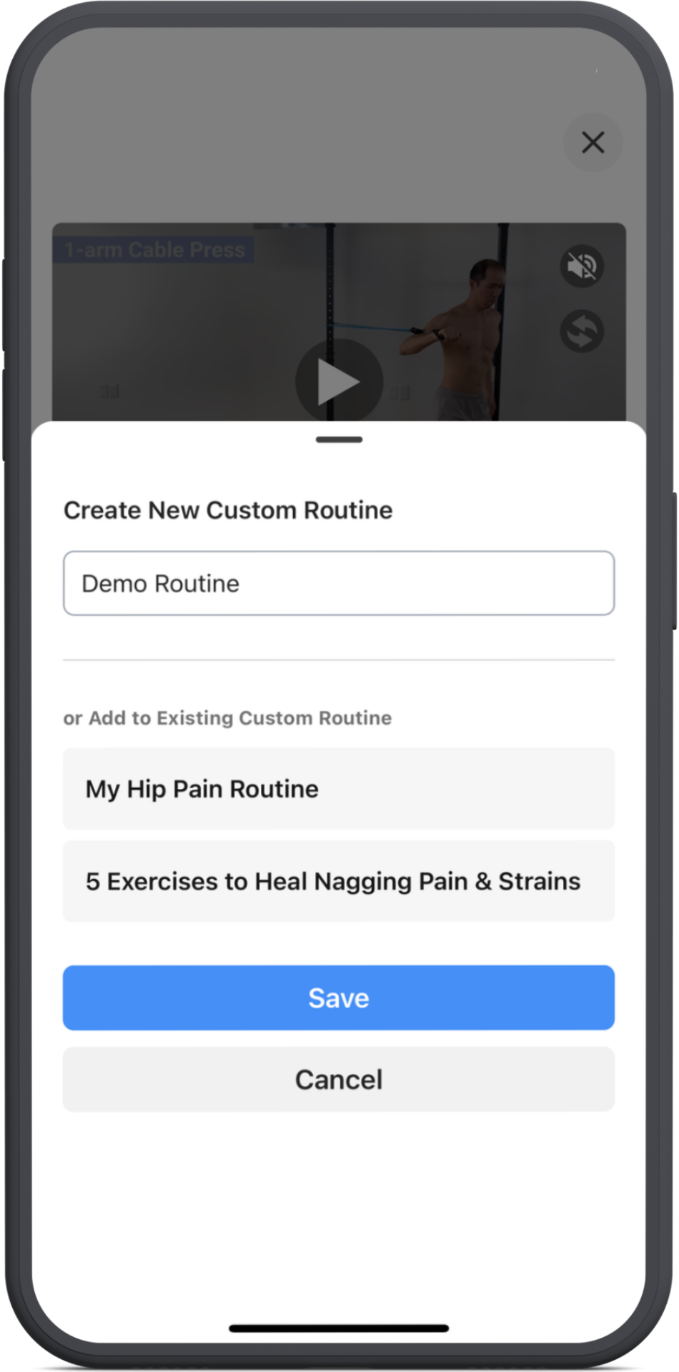 You can create a new routine by typing in name or add the exercise to one of your existing custom routines by tapping on their name.