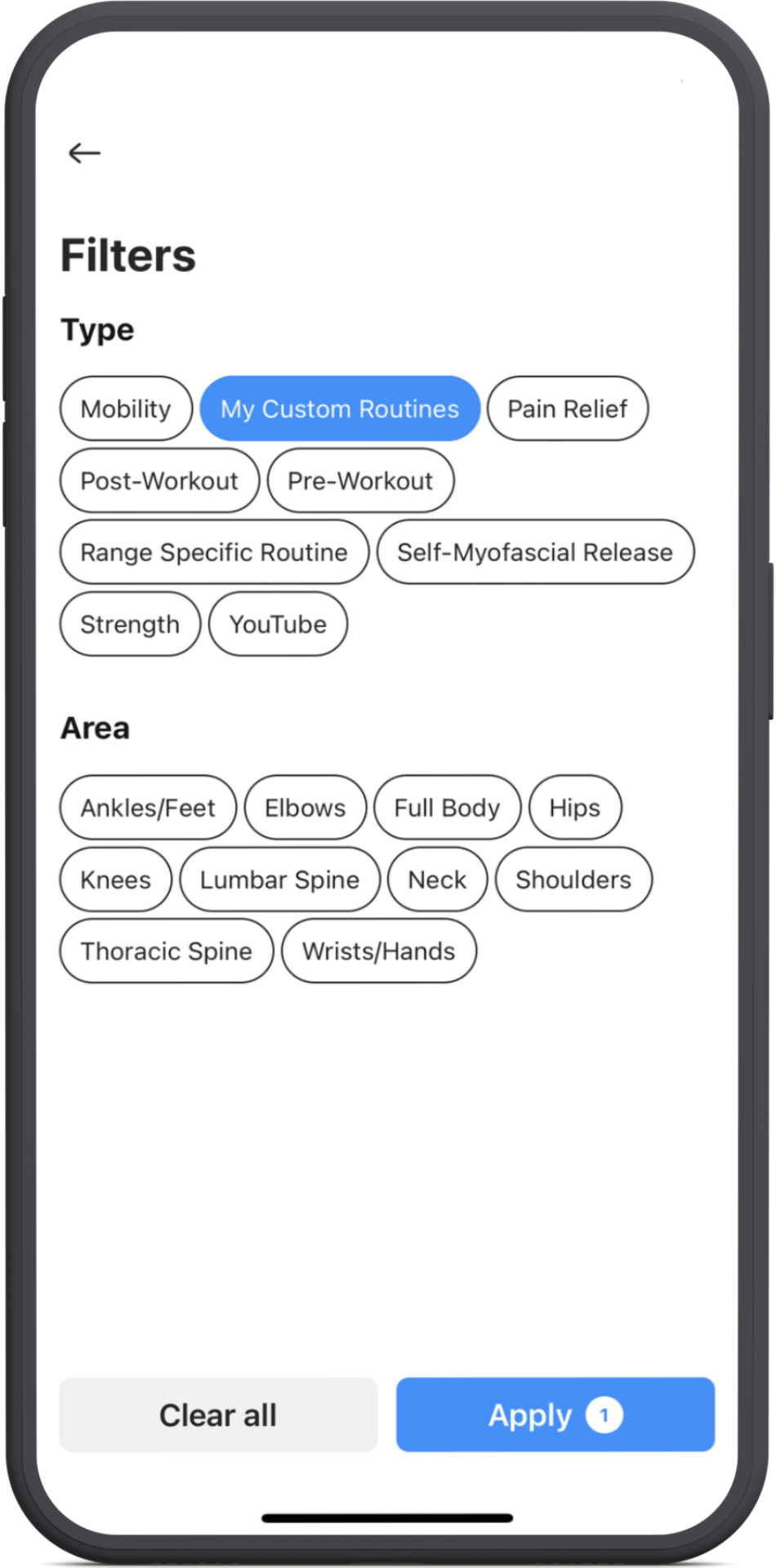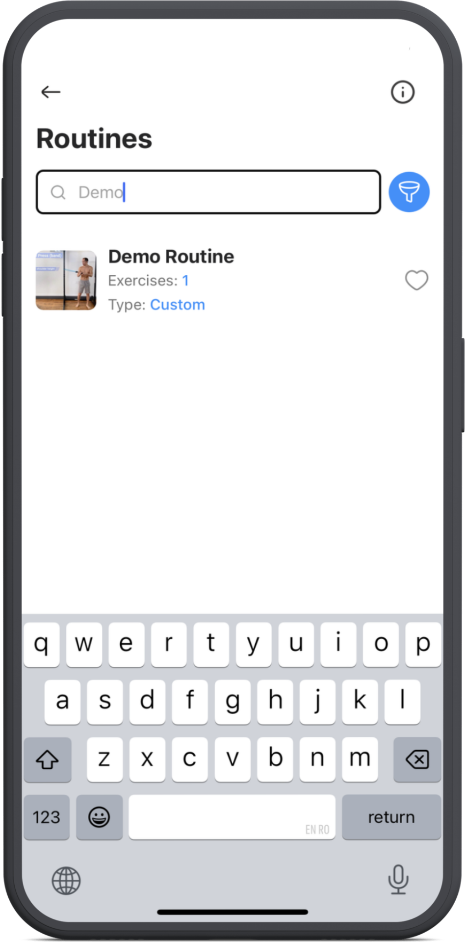 Or you can filter the routines by tapping the blue funnel icon next to the search bar.