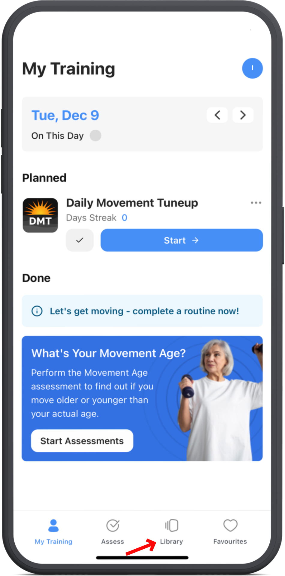 When it shows up in your training area just tap Start and then tap Start Routine and follow each exercise.