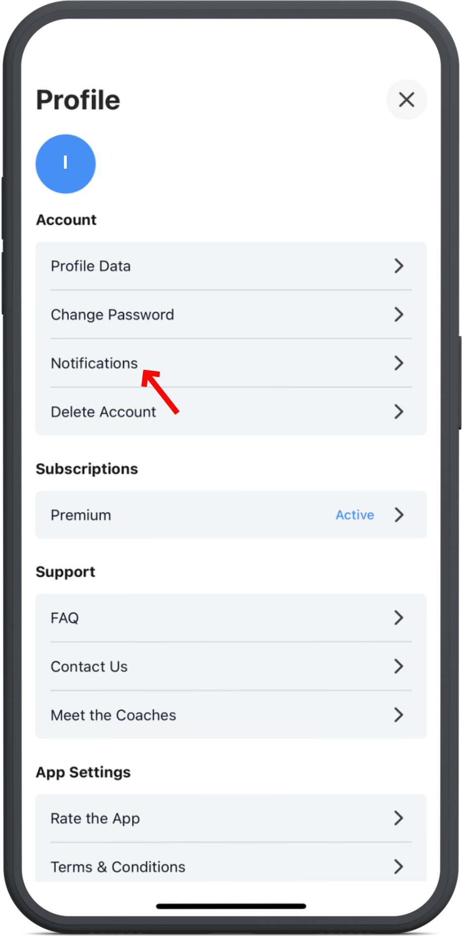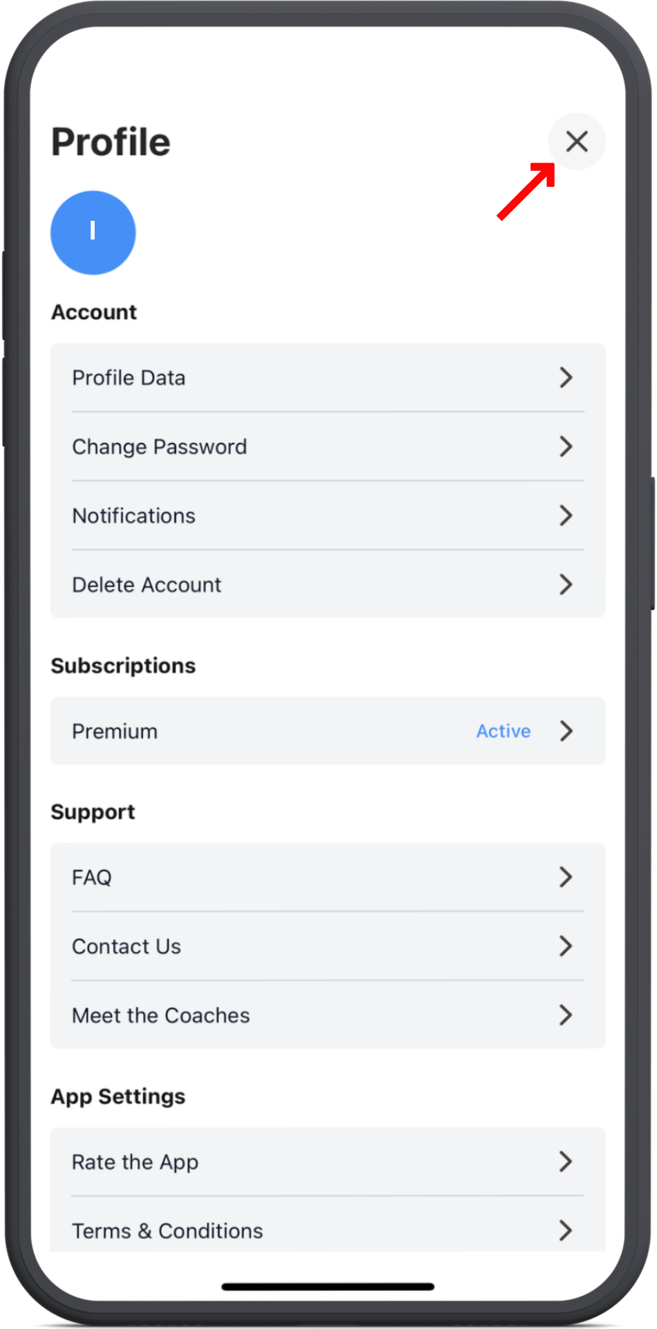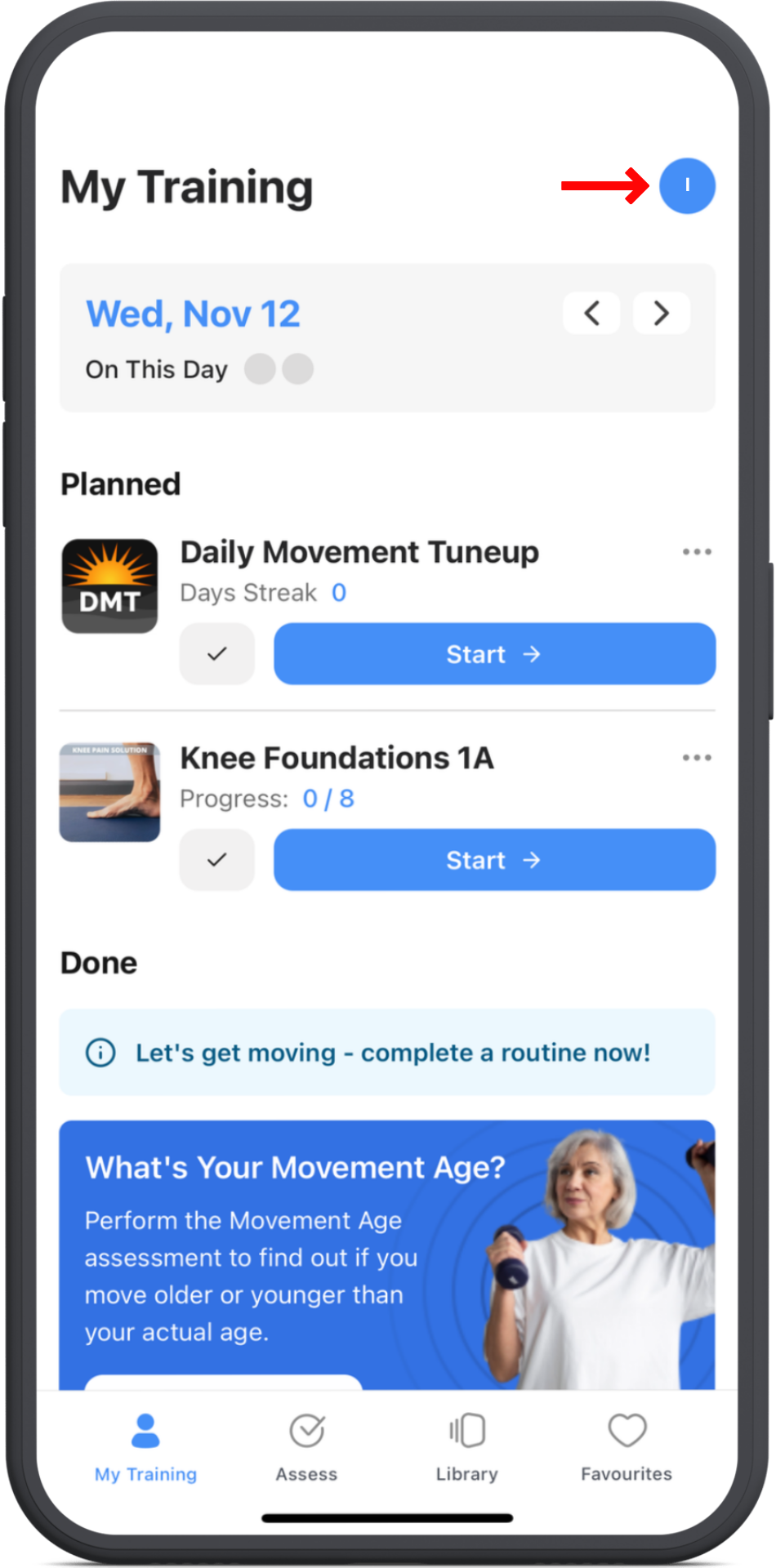 Tap the My Training icon at the bottom left of your device, then tap your profile icon at the top right of the screen.